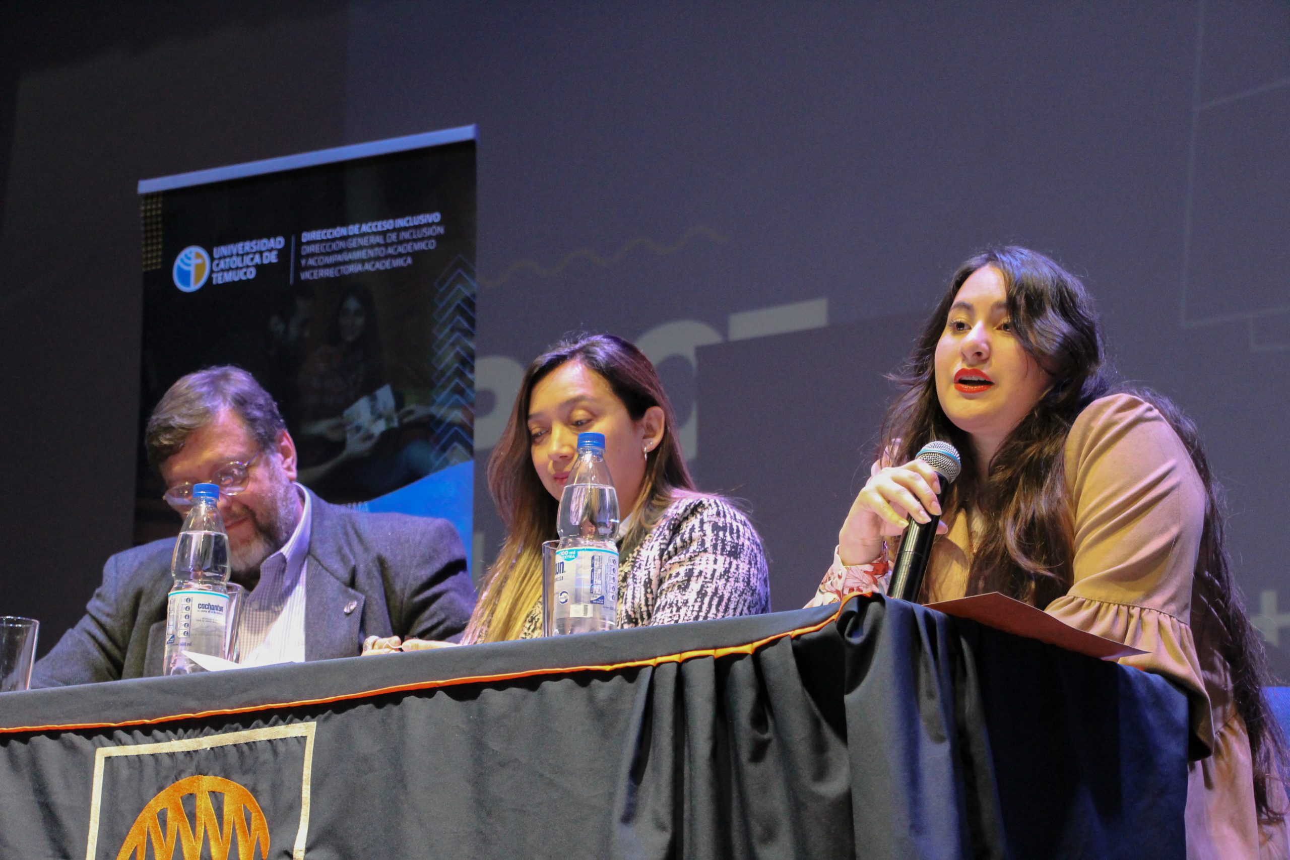 Luego de la proyección, se realizó un enriquecedor conversatorio con la participación de la directora del Liceo anfitrión, Alejandra Lavín Anríquez; el Director General de Inclusión y Acompañamiento de la Universidad Católica de Temuco (UCT), Rodrigo del Valle; y Daniela Canteros, egresada de la carrera de Arquitectura de la UCT y #AlumniPACEUCT. Durante esta instancia, se abordó la importancia del acompañamiento académico y emocional que el PACE brinda a los y las estudiantes desde la enseñanza media hasta su integración en la vida universitaria.